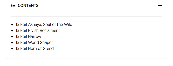 Algunas remesas incluirán contenido tanto de Magic Online como de MTG: Arena, como en el ejemplo de arriba. Sin embargo, otras podrían incluir solo contenido de uno o del otro. Algunas remesas no incluirán ningún contenido digital. En esos casos, la página del producto debería verse así: